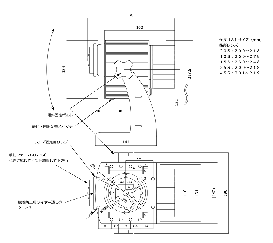 標準レンズ 20S 距離mx0.34 ナローレンズ10S 距離mx0.18 ナローレンズ15S 距離mx0.23 ワイドレンズ25S 距離mx0.43 ワイドレンズ45S 距離mx0.87 |